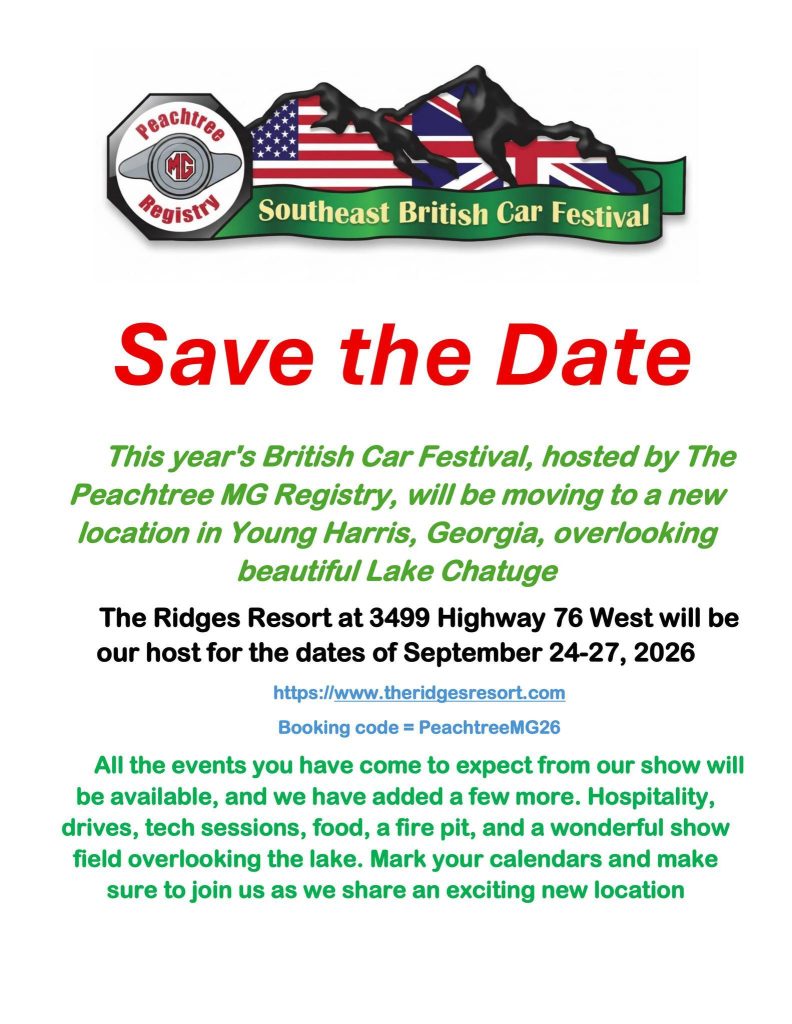 Show registration, show schedules, etc are online for the 60th Gathering of the Faithful South MG Car Show. Rather than have upstate SC members drive all the way to Myrtle Beach for the convoy (although they can if they want to), it might be easier for them to join up in Charleston, or at the convoy’s overnight hotel stop just outside Savannah, GA on April 13. 2026.