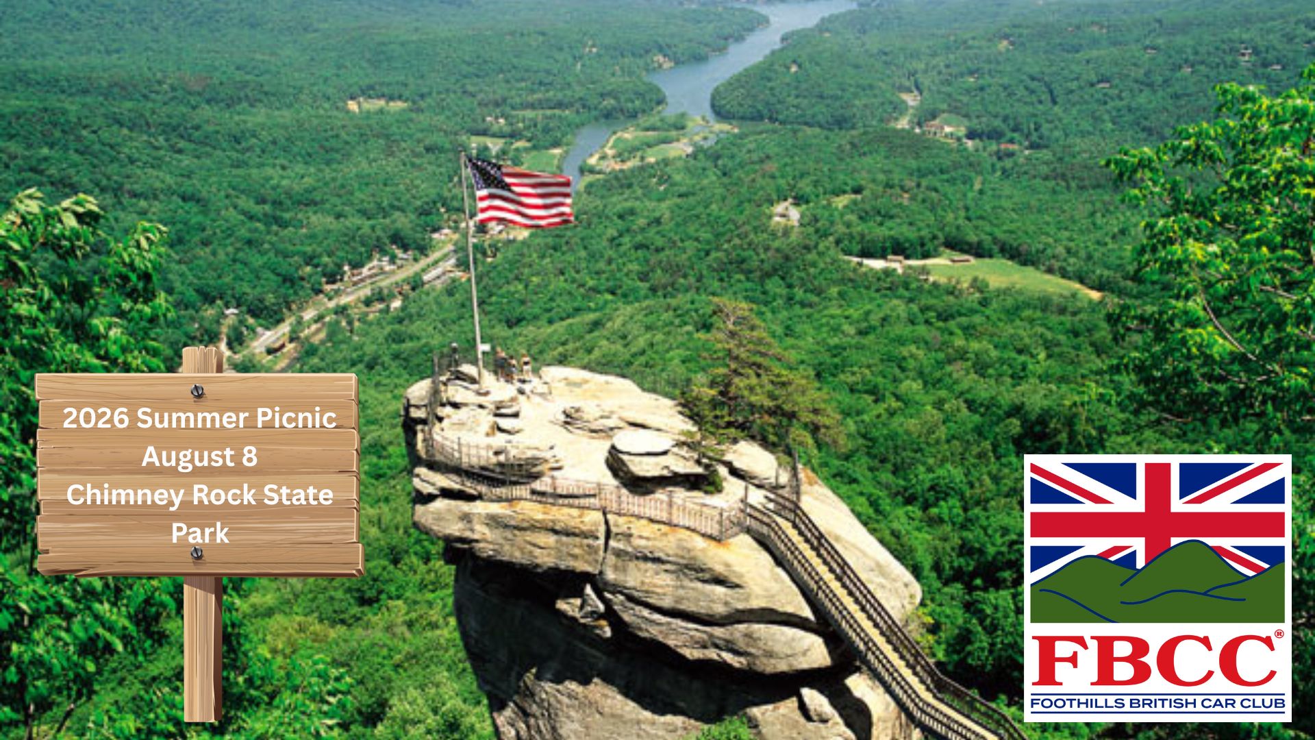 We’re excited to announce that with the reopening of Chimney Rock State Park after Hurricane Helene, the park has generously agreed to host FBCC for a special picnic gathering! We have reserved 50 premium parking spaces at the top of the lot exclusively for vintage cars — offering incredible photo opportunities with Chimney Rock as the backdrop.