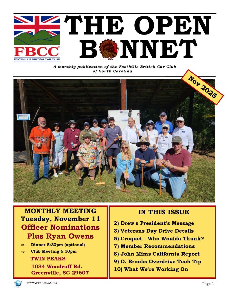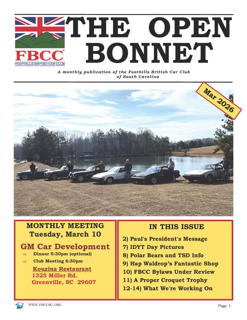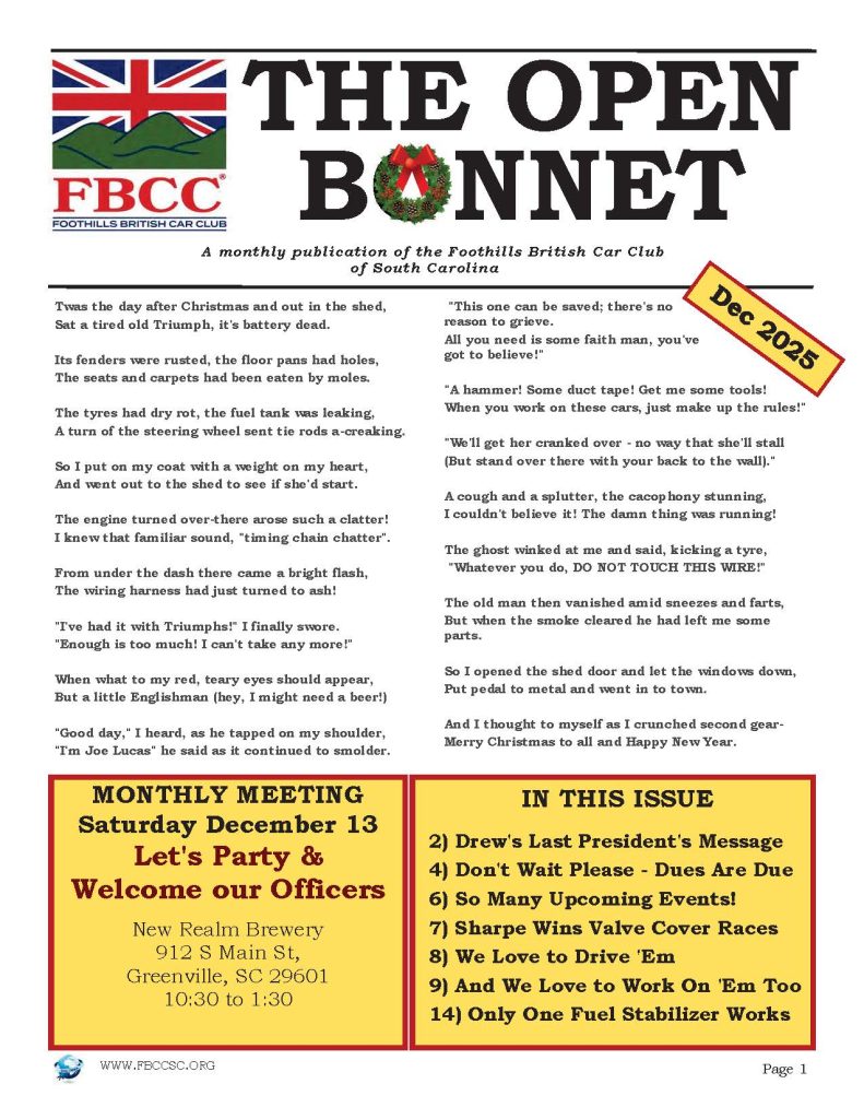 The Open Bonnet is our place for news, tech tips, sharing photos, stuff for sale and more. Below is our current issues. All back issues are in the members only area of our website.