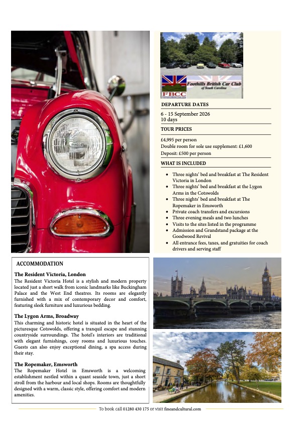 Join us September of 2026 for a grand tour of all things British Motorcar ending at the Goodwood Revival. Details below.